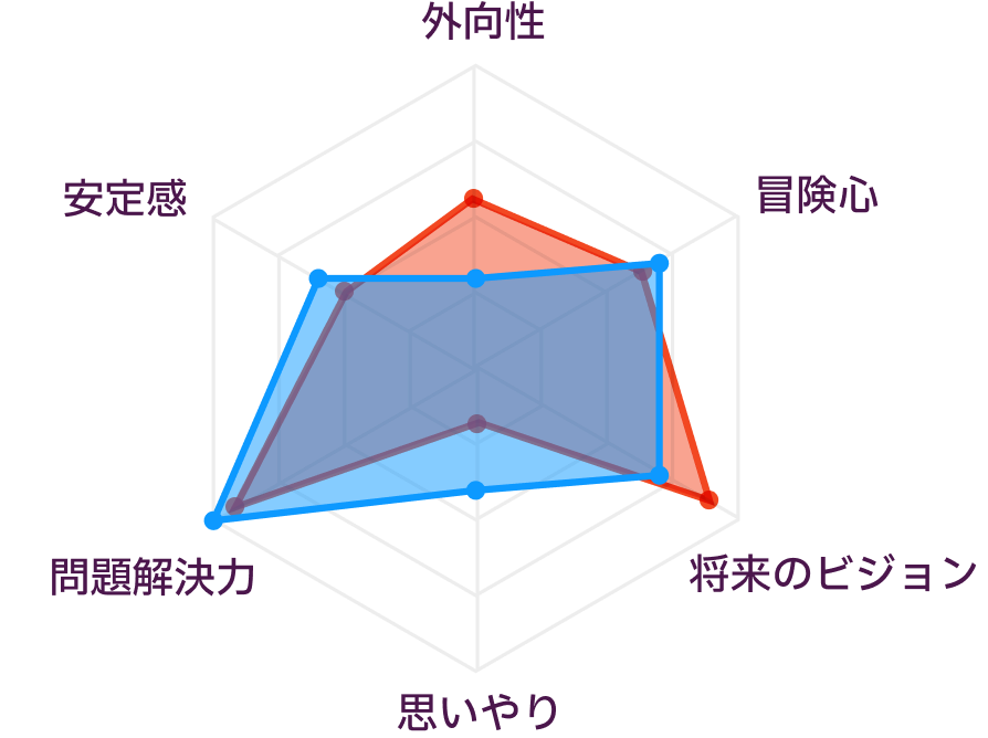 この二人はE(外向)とI(内向)、PとJが異なるため、同じものに興味を持ち、価値観も似ているのですが、全く違った人間のように感じます。
