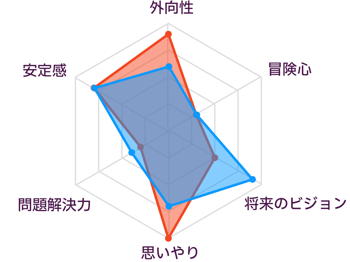 穏やかで優しい人の印象ですが、基本的に相手に合わせてしまうので本当の自分を出すのが苦手です。一部の人には不思議な人に思えるでしょう。自分の価値観は強めな印象です。