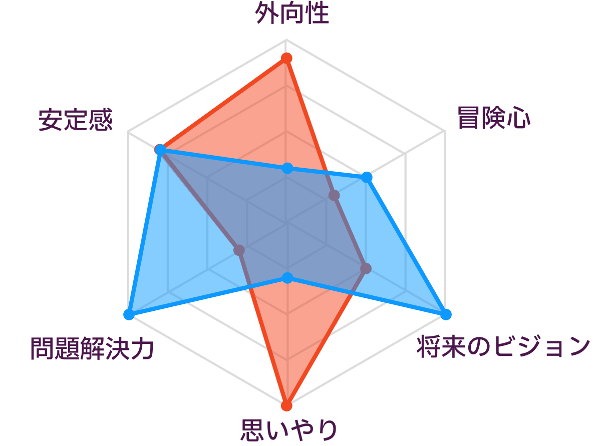 また、この2つのタイプは苦手なことと得意なことも正反対であるため、お互いが相手のことを意識せずとも自然とフォローしあえる関係を築くことができます。
