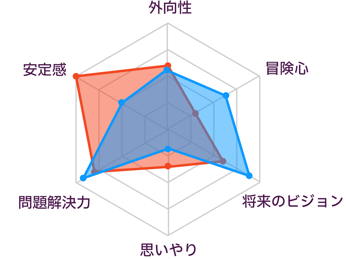 この二人は一見、似た者同士であり、違いはT(思考)とF(感情)のみ、もしくはS(感覚)とN(直感)のみです。