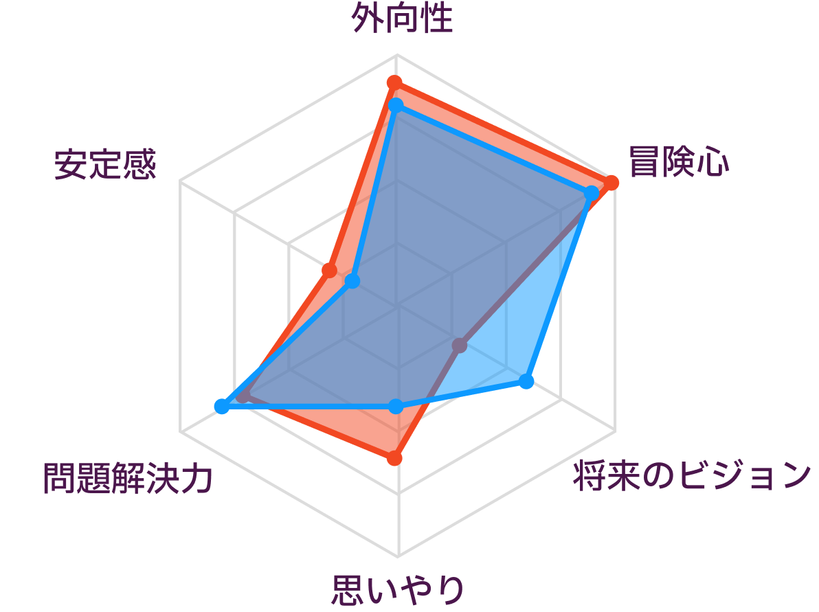 この二人は一見、似た者同士であり、違いはT(思考)とF(感情)のみ、もしくはS(感覚)とN(直感)のみです。