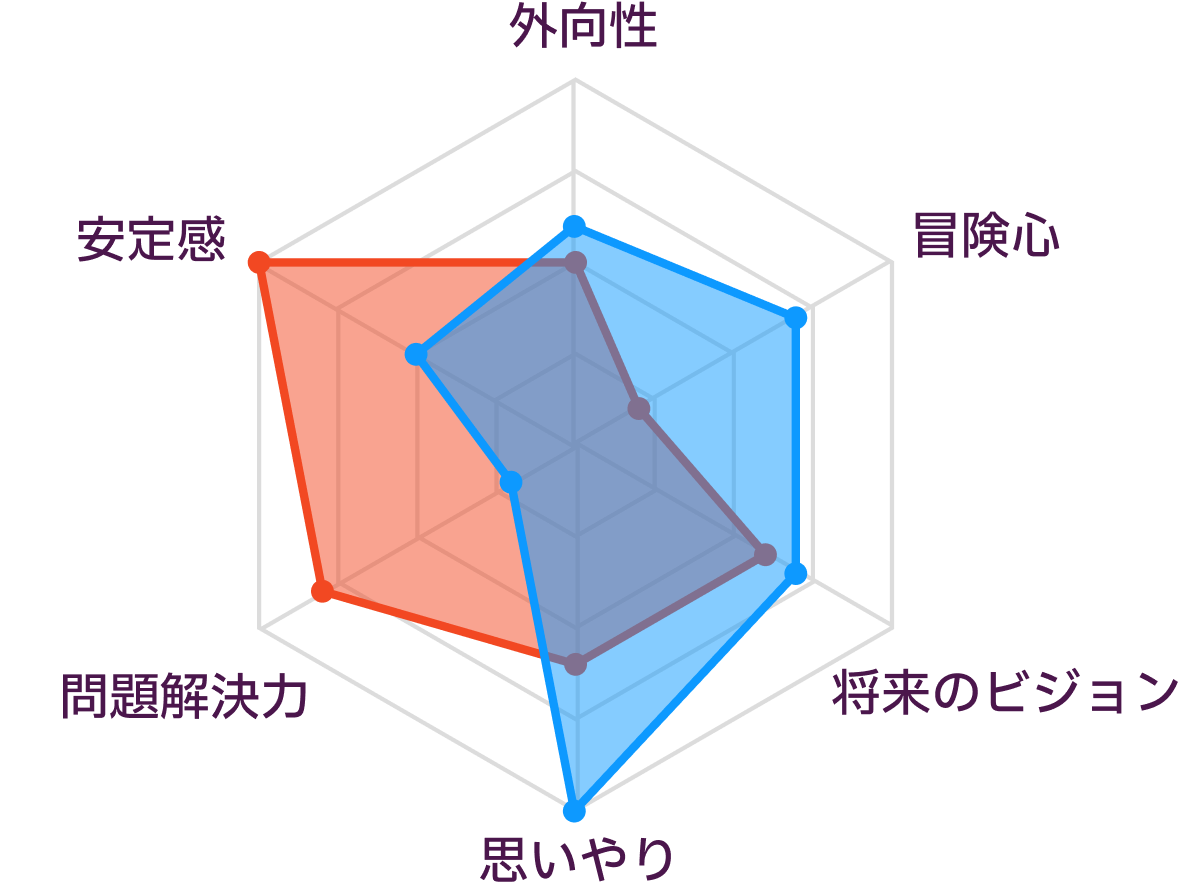 この二人はE(外向)とI(内向)のみが一緒のため、一見異なるように見えますが、全相性の中で関係の構築が最も簡単です。