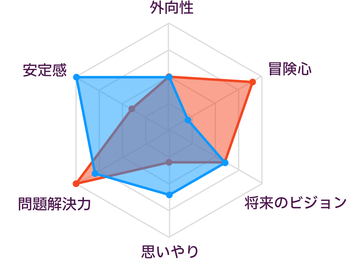 この二人はP(知覚)とJ(判断)以外の全てが同じのため、一見、性格はかなり類似しているように見えます。そのため初対面から一気に仲良くなることも多いです。